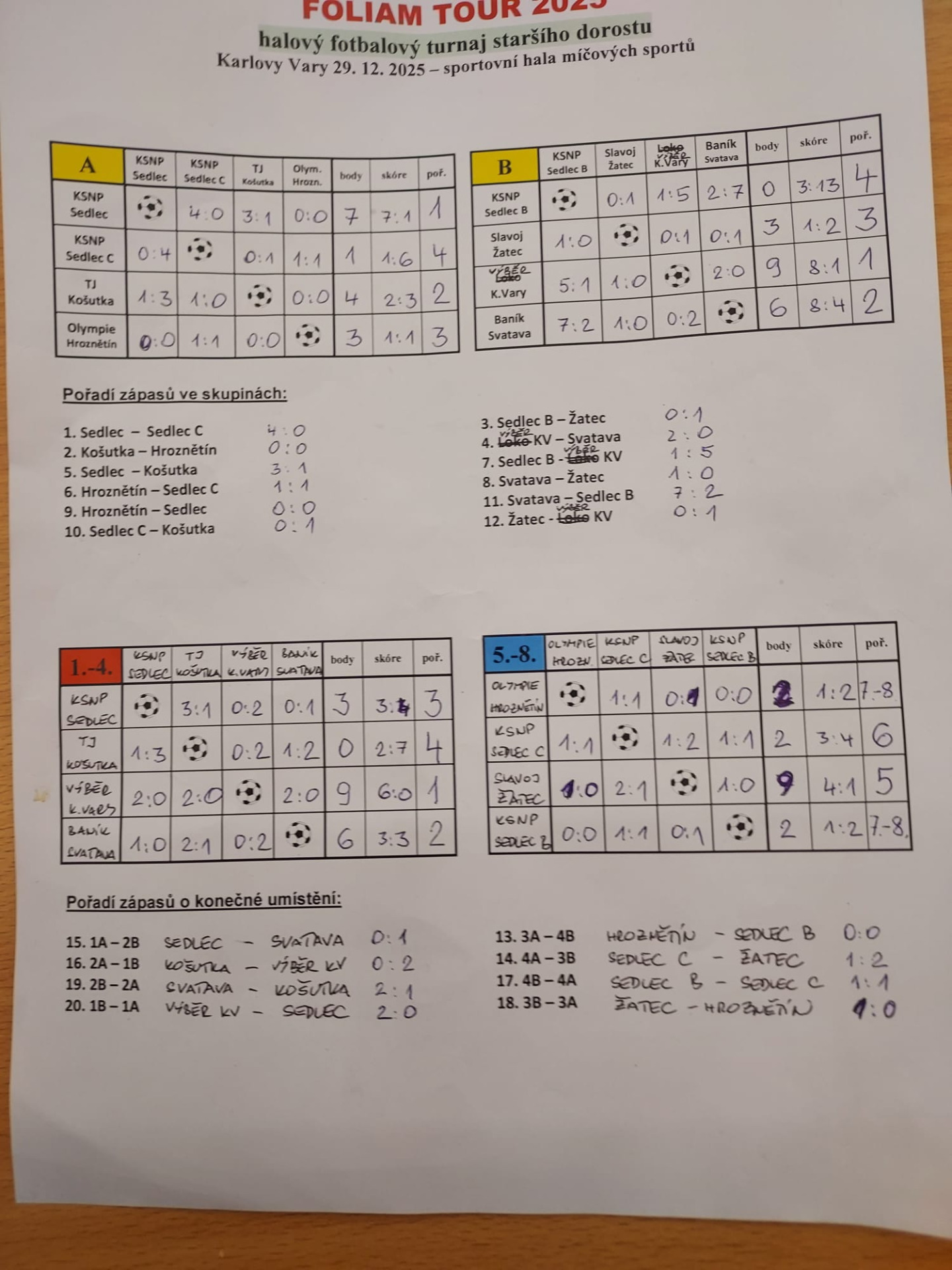 3. 🥉 KSNP Sedlec A : který měl turnaj dobře rozehraný, ale v klíčových zápasech doplatil na neproměněné šance.